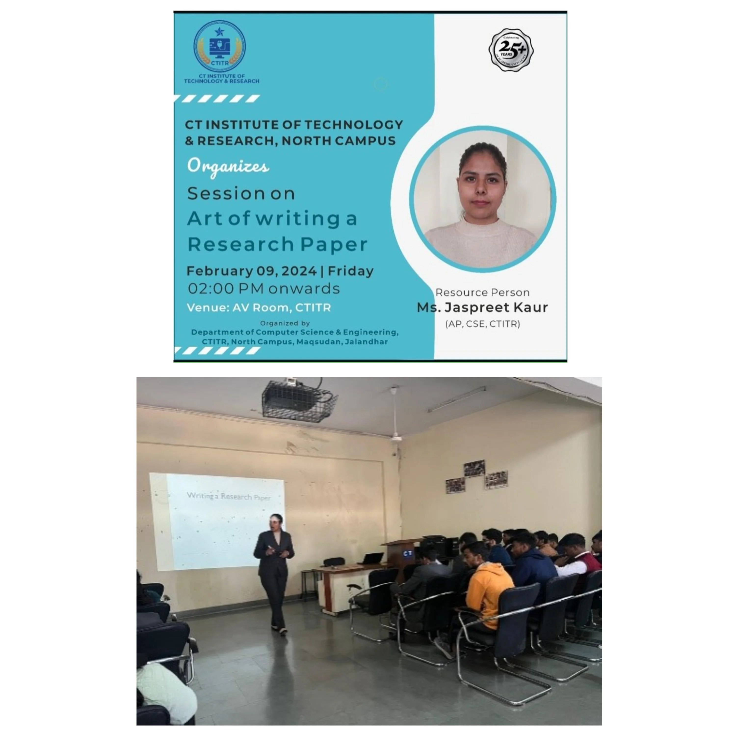 A session on "The Art of Writing a Research Paper" was organized on February 9, 2024. The event aimed to equip participants with essential skills and techniques for crafting high-quality research papers. Esteemed speakers shared their expertise on structuring, writing, and publishing research, offering valuable guidance to attendees.